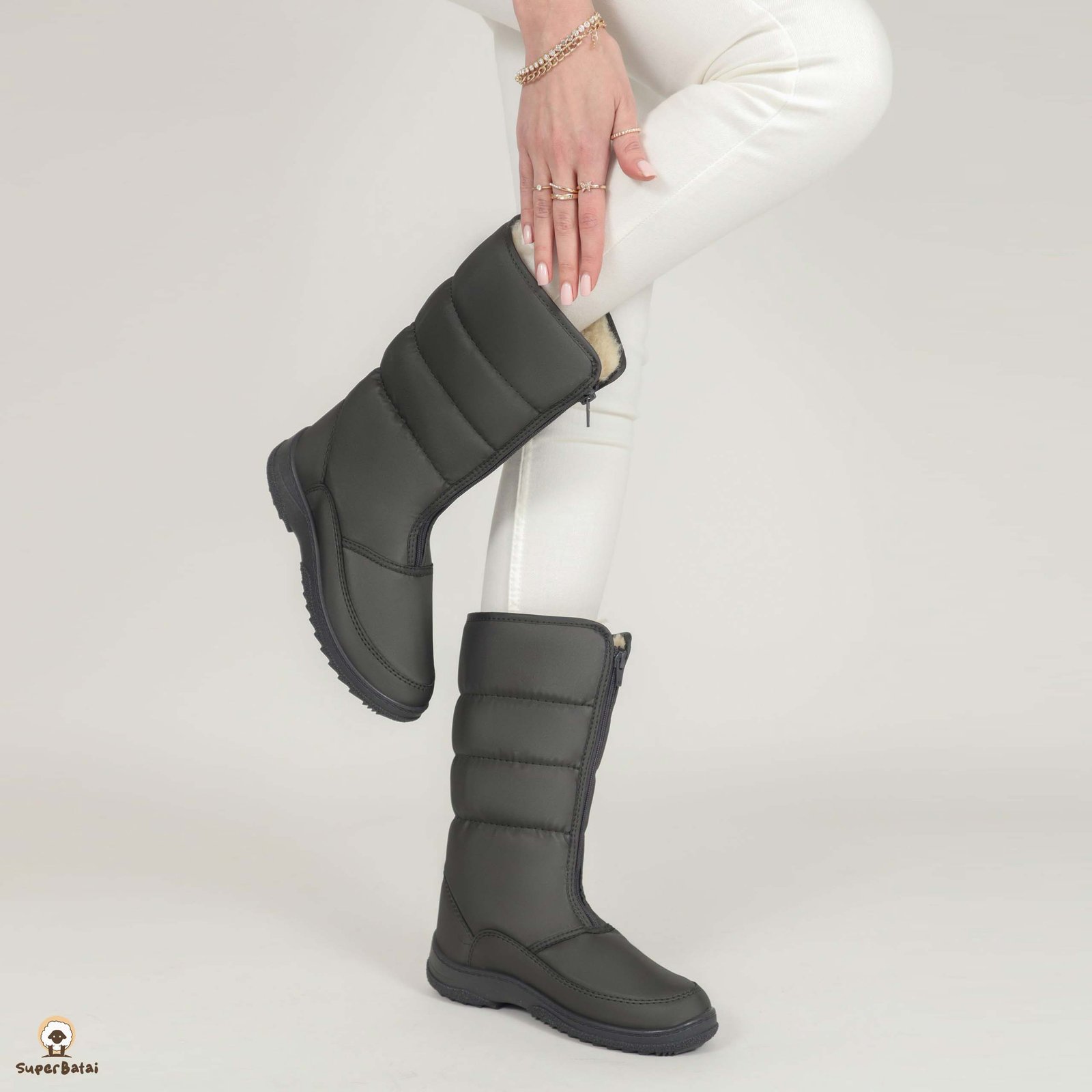 Batų viduje – natūrali vilna. Išorėje esantis satinas neleidžia prasiskverbti drėgmei ir o vilna palaiko tolygiai šiltą temperatūrą batų viduje. Neslidus, storas, bet labai lengvas padas ir stilinga išvaizda – viskas ko reikia nuostabiam rudens ir žiemos sezonui.