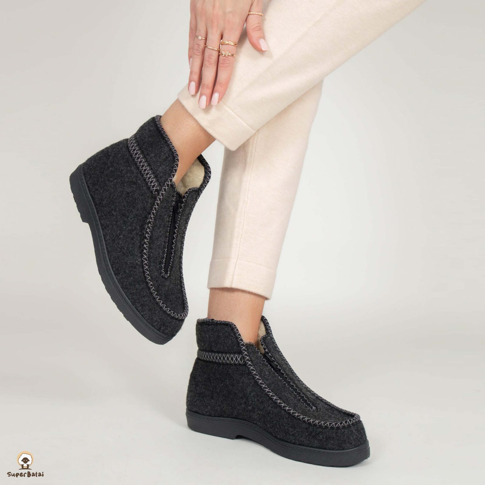 Batų viduje – natūrali vilna. Vilna palaiko tolygiai šiltą temperatūrą batų viduje. Neslidus, storas, bet labai lengvas padas ir stilinga išvaizda – viskas ko reikia nuostabiam rudens ir žiemos sezonui. Didesnius dydžius rasite čia.