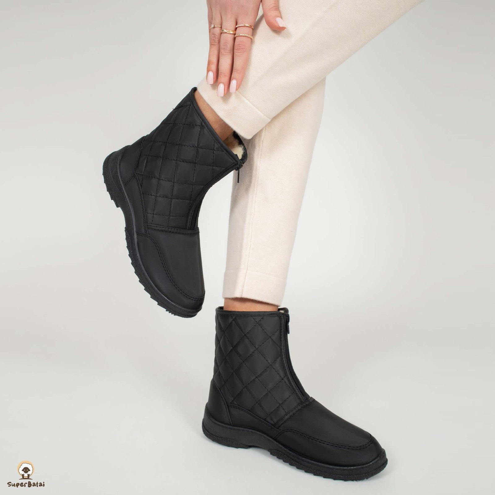Batų viduje – natūrali vilna. Išorėje esantis satinas neleidžia prasiskverbti drėgmei, o vilna palaiko tolygiai šiltą temperatūrą batų viduje. Neslidus, storas, bet labai lengvas padas ir stilinga išvaizda – viskas ko reikia nuostabiam rudens ir žiemos sezonui.