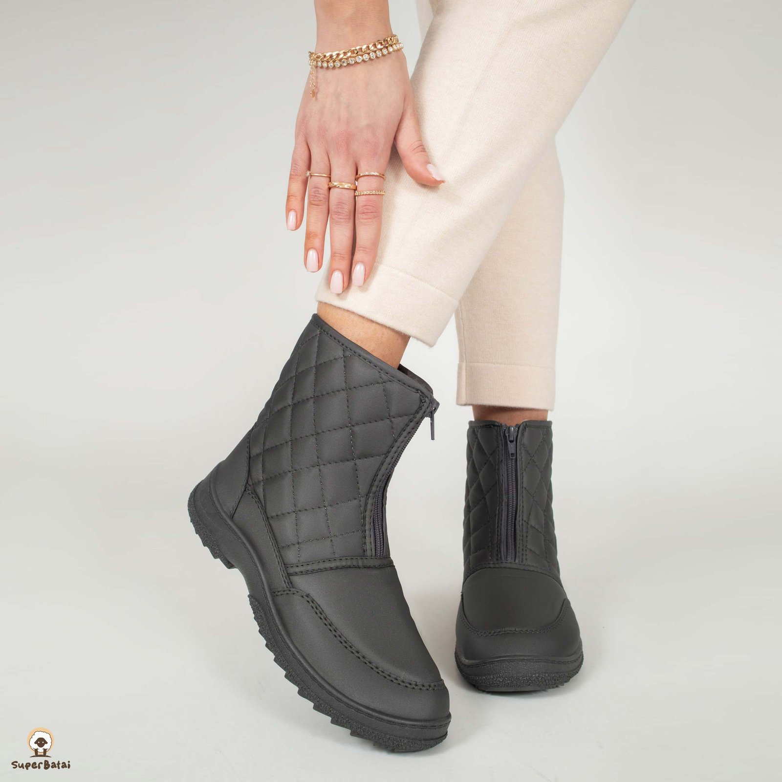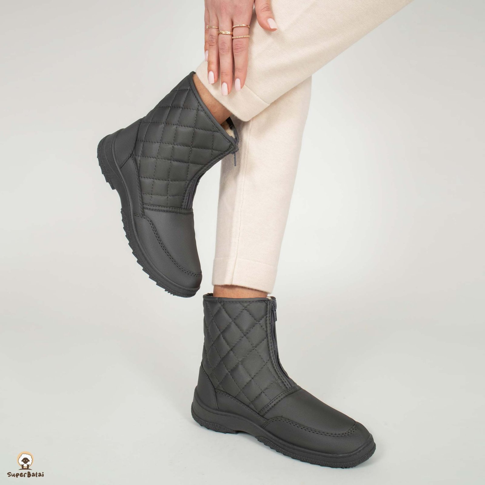 Batų viduje – natūrali vilna. Išorėje esantis satinas neleidžia prasiskverbti drėgmei ir o vilna palaiko tolygiai šiltą temperatūrą batų viduje. Neslidus, storas, bet labai lengvas padas ir stilinga išvaizda – viskas ko reikia nuostabiam rudens ir žiemos sezonui.