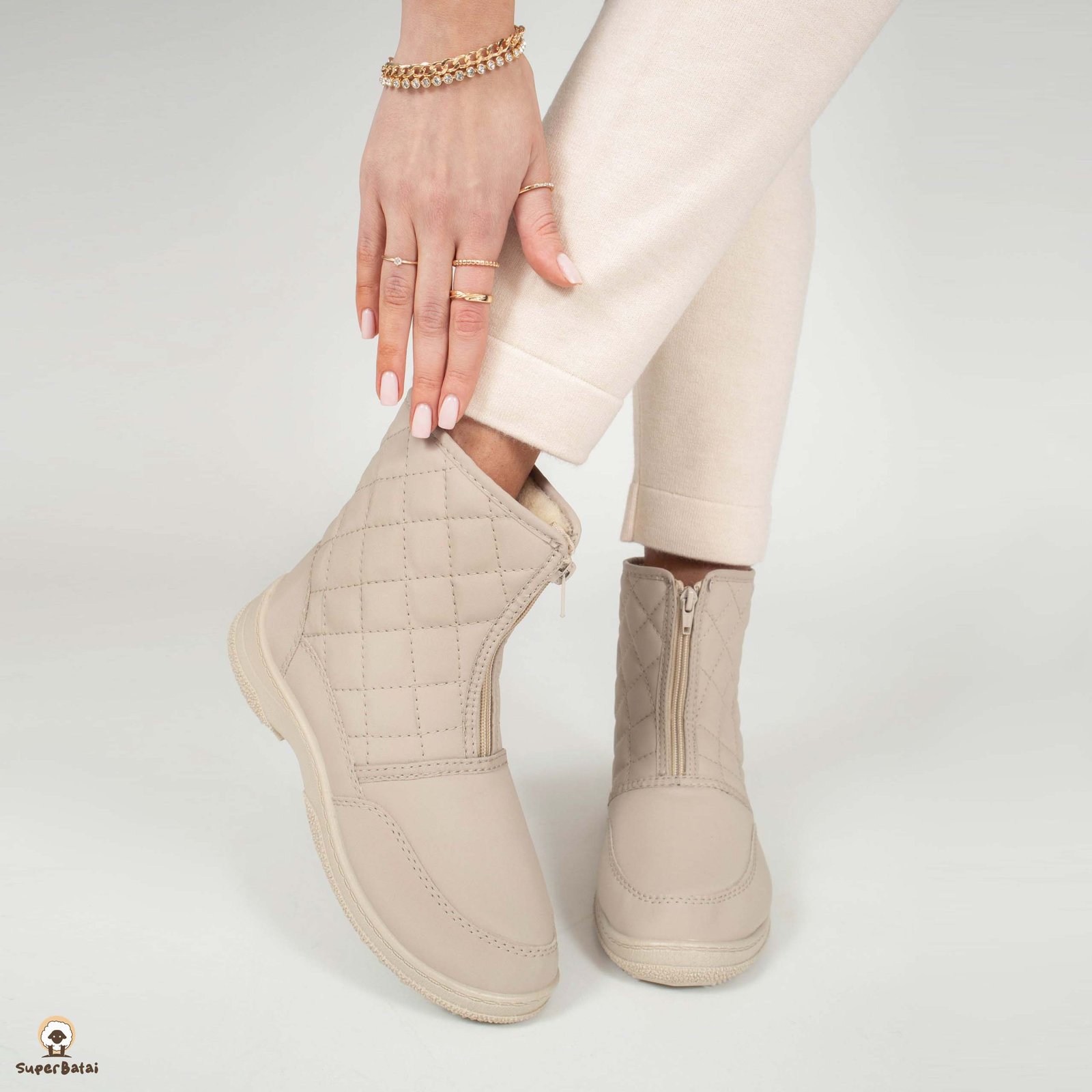 Batų viduje – natūrali vilna. Išorėje esantis satinas neleidžia prasiskverbti drėgmei ir o vilna palaiko tolygiai šiltą temperatūrą batų viduje. Neslidus, storas, bet labai lengvas padas ir stilinga išvaizda – viskas ko reikia nuostabiam rudens ir žiemos sezonui.